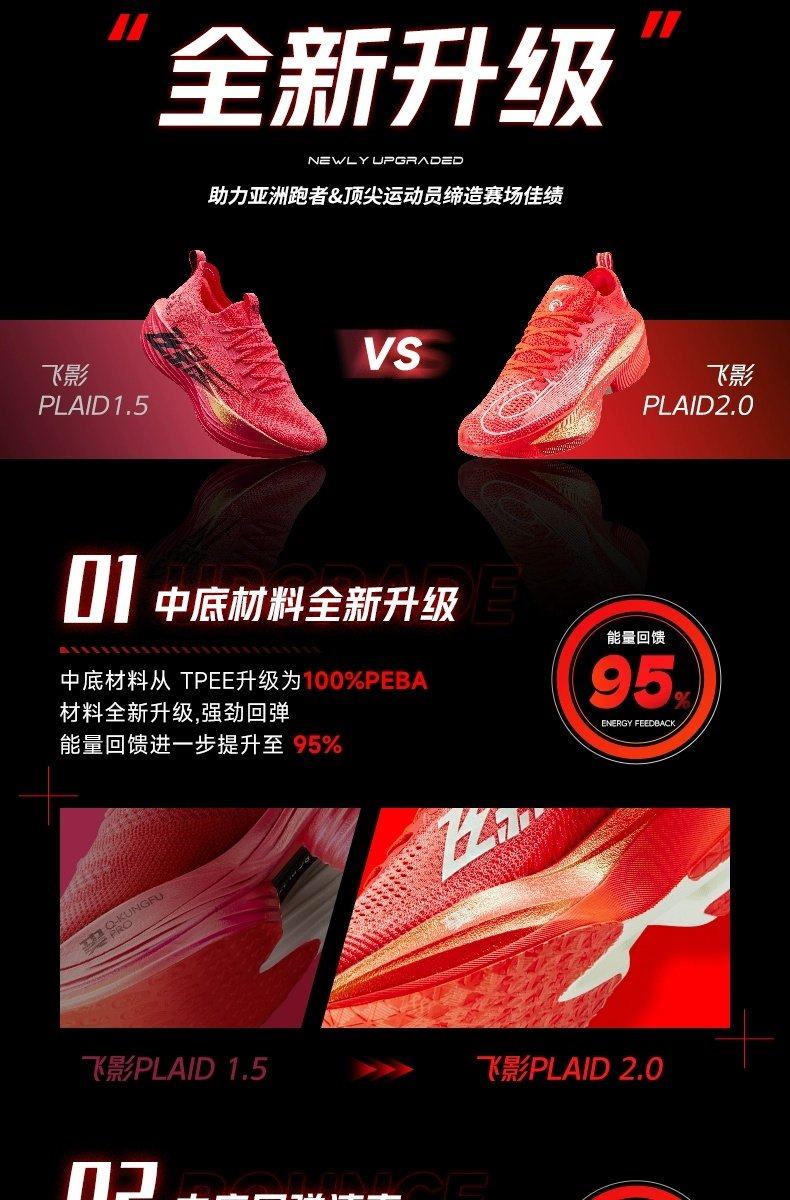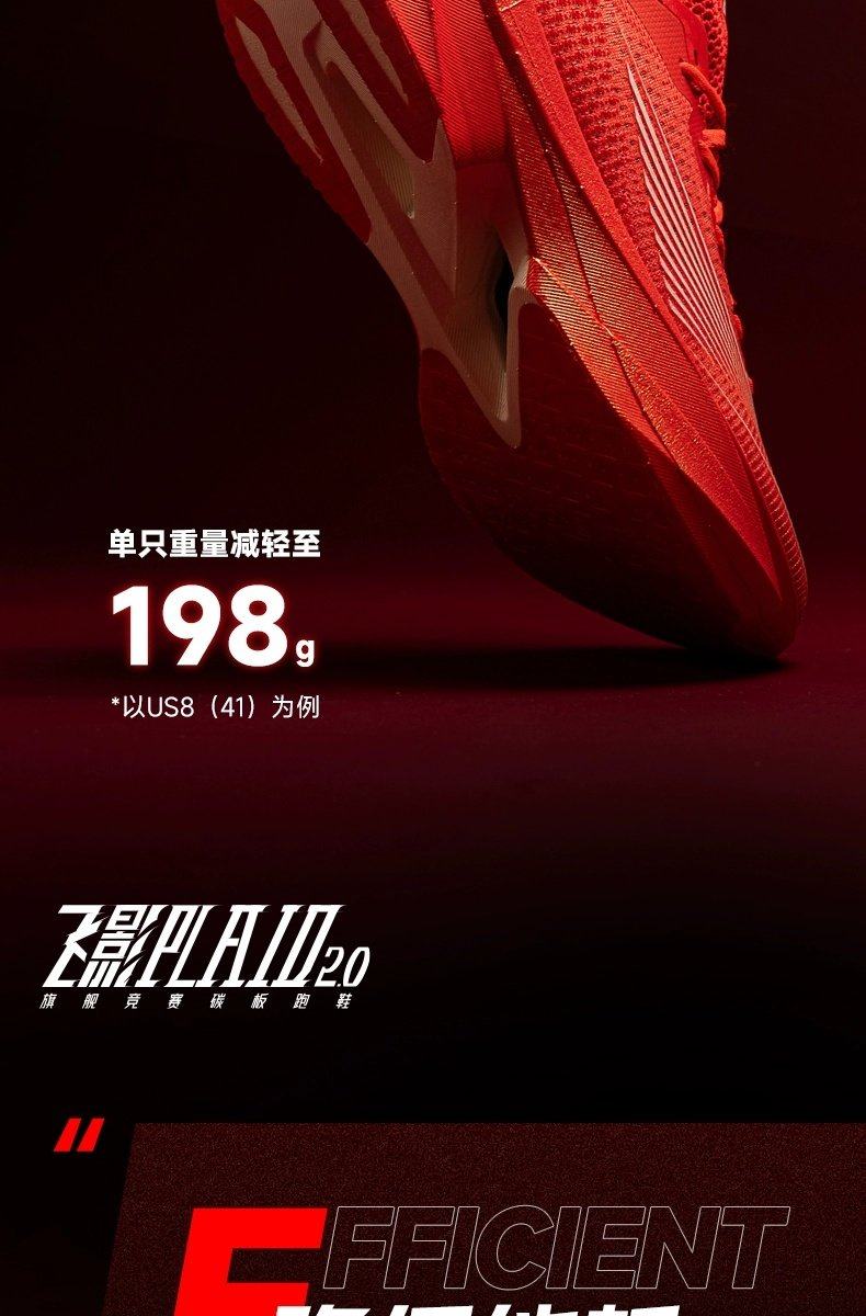 Designed for athletes with a cadence of 185-190 steps per minute, this shoe excels in marathon races and high-intensity training (intervals, tempo runs). Its 95% energy return, 0.2s quick rebound, and reduced energy loss (4% lower consumption) make it a game-changer for late-race sprints, while the upgraded stability features eliminate the drawbacks of previous generations. With a competitive price point vs. international flagship racing shoes, the Feiying Plaid 2.0 offers elite performance without the premium cost.
