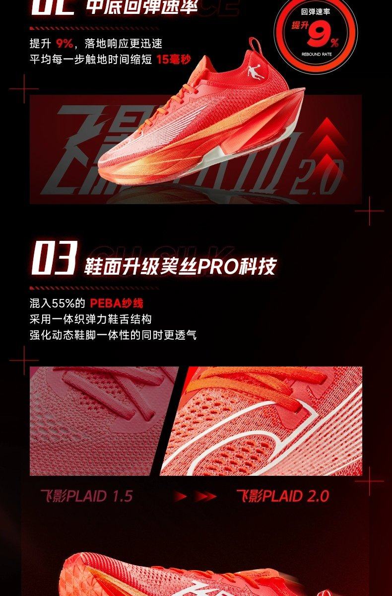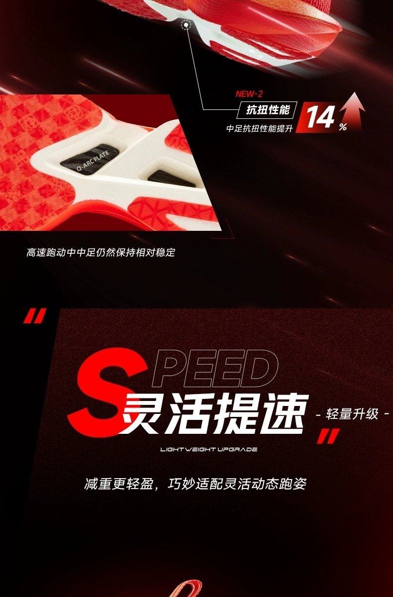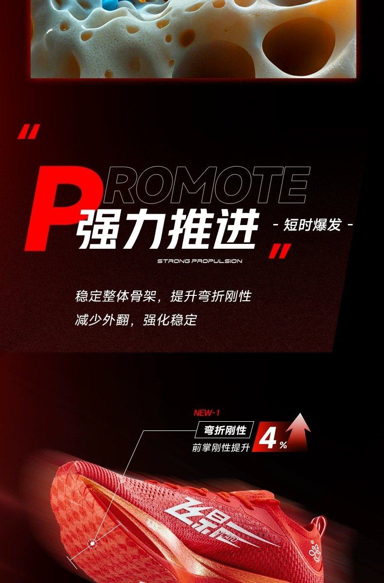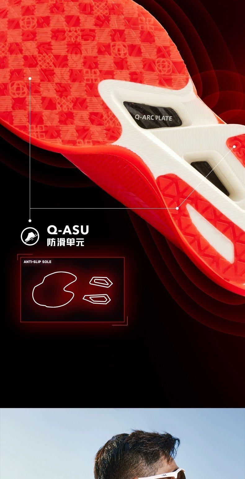* Midsole: Q-KUNGFU PRO-HP (100% PEBA Supercritical Foam, 95% Energy Return)