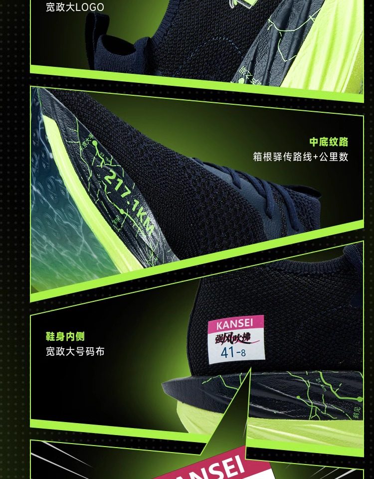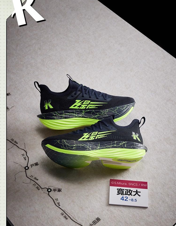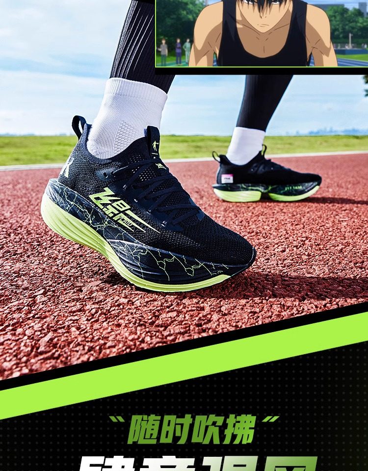 Designed for stride-based athletes with sufficient lower-body strength, this shoe excels in marathon races, long-distance LSD training, and high-intensity interval sessions. Its 92% energy return midsole and "seesaw" rolling carbon plate maintain consistent pace even over 42km, while the upgraded TPU knit upper ensures secure support. The exclusive "Kurahara Asahi" colorway (Academy Blue/Fluorescent Yellow) adds collectible value, blending performance with anime nostalgia.