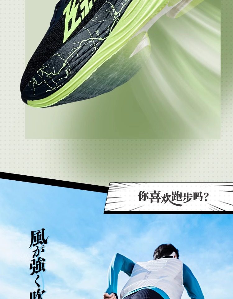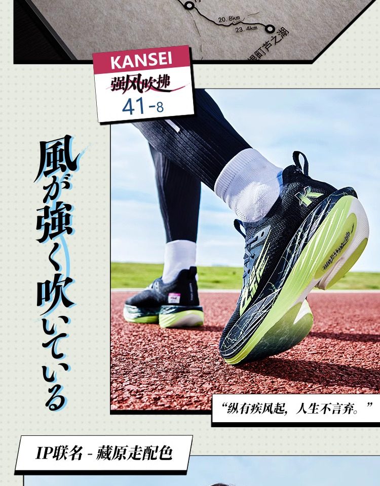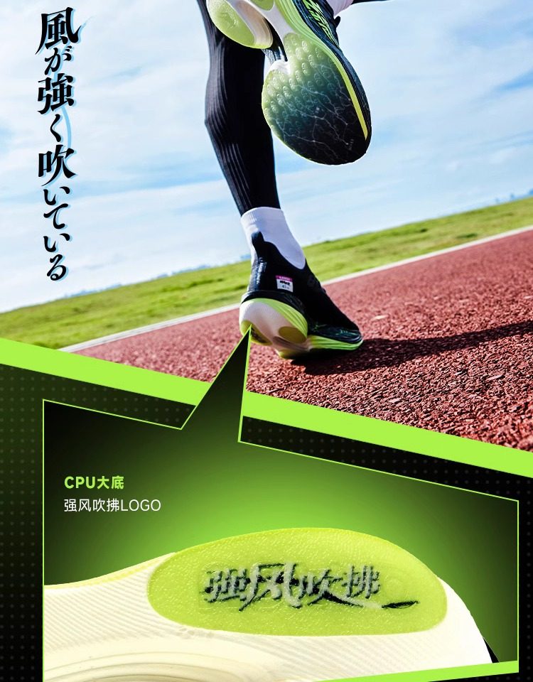 * Target Users: Elite stride-based runners with sub-3:30 full marathon goals, sufficient lower-body strength, and stable running form. Fans of the "Run with the Wind" anime seeking a collectible performance shoe.