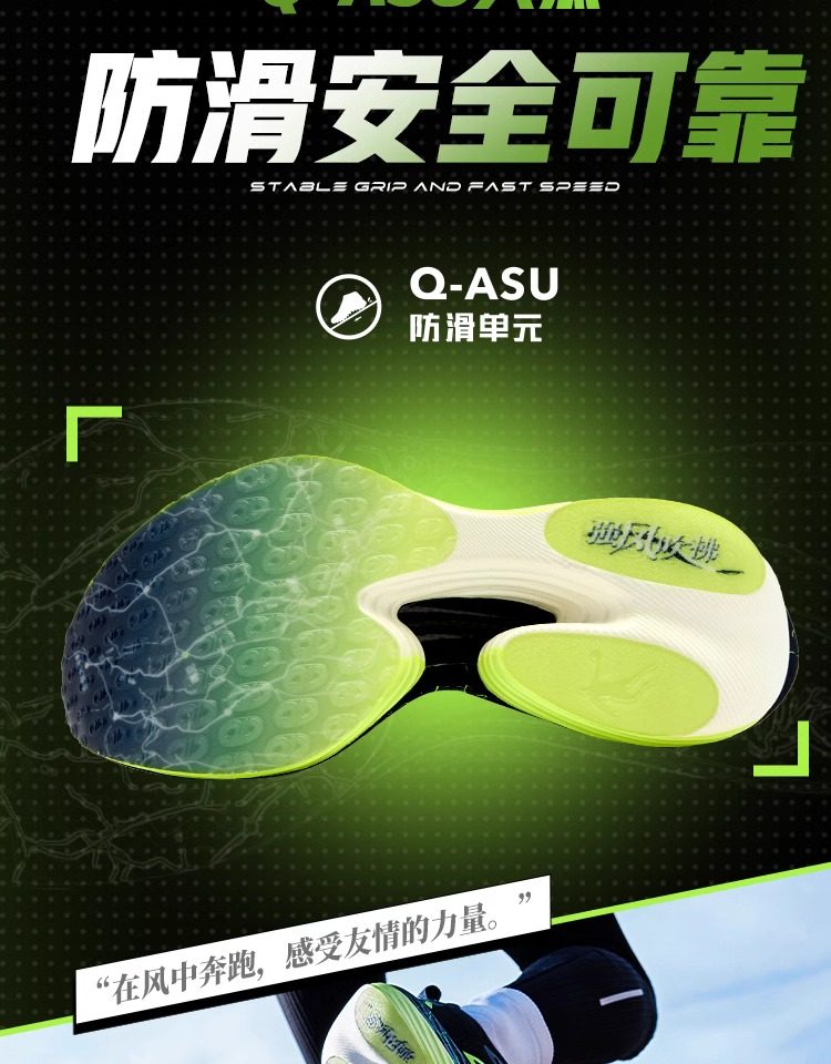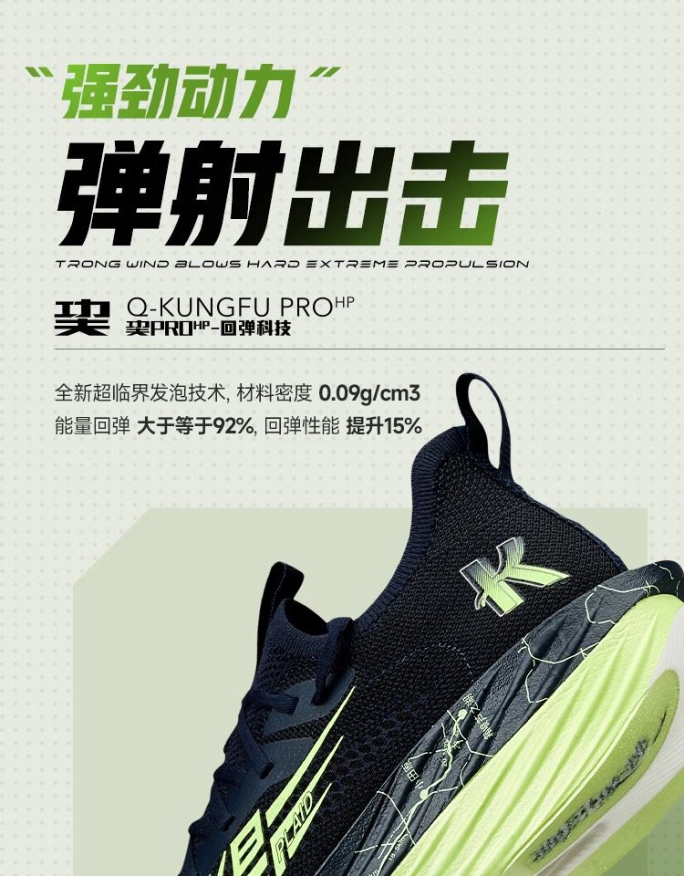 * Midsole: Q-KUNGFU PRO-HP Foam (92% Energy Return)