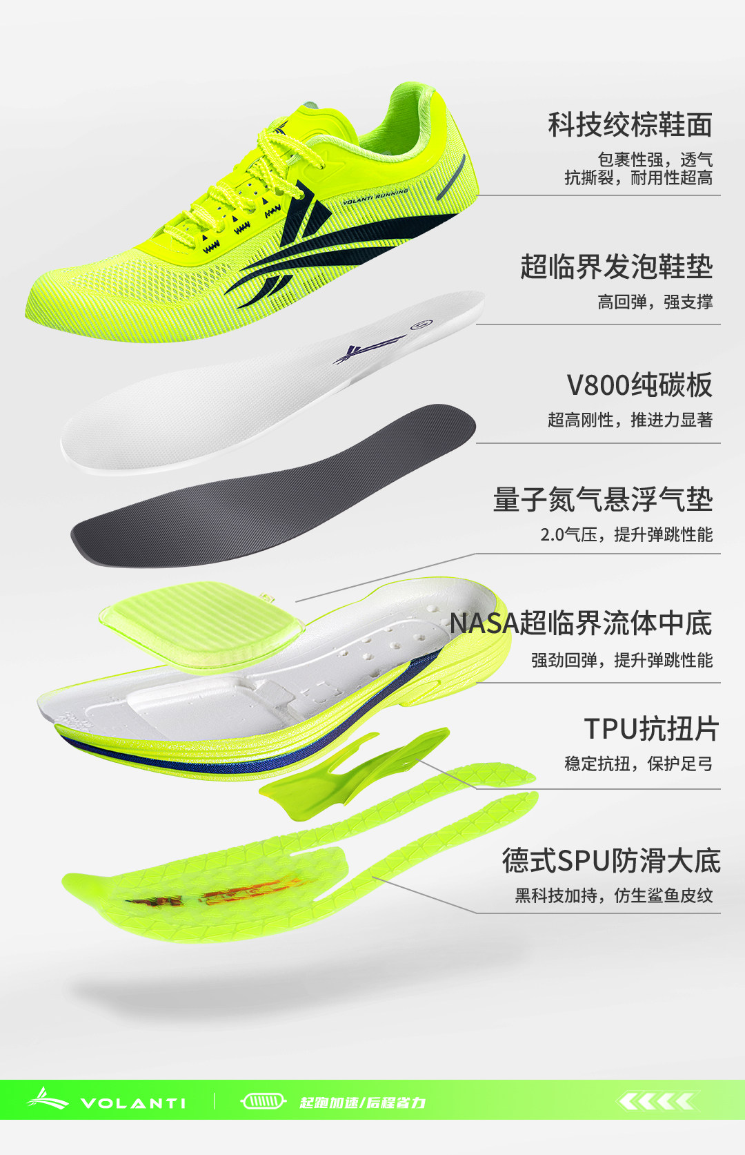 * Full Palm V800 Military-Grade Carbon Plate: Boosts propulsion by 185%, allowing you to shave approximately 1.47 seconds off your 100m sprint time and maintain strong forward momentum throughout your run.