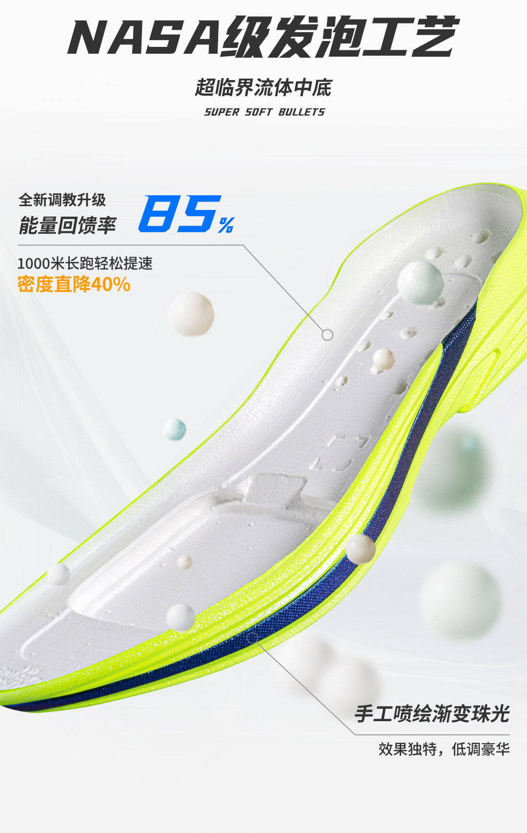 * NASA-Grade Supercritical Midsole: Reduces weight by over 40% compared to traditional running shoes, with an energy return rate of 85%-92%. Save up to 50 seconds of energy during a 1000m run, keeping you fresh even in the final stretch.