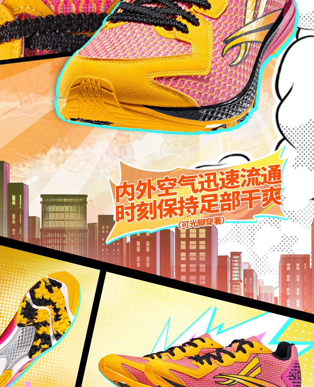 * Honeycomb Elastic Midsole (85% Rebound Rate) - Equipped with honeycomb elastic technology and energy capsule columns, the midsole absorbs impact during landing and converts it into powerful rebound force, delivering a "catapult-like" feeling with every step.