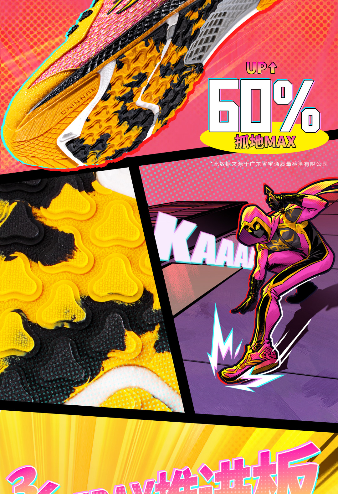 * Bionic Anti-Slip Outsole - The forefoot is designed with diamond-shaped "wasp sting" patterns, increasing grip by 1.8x compared to regular rubber. It ensures stable traction even on wet tracks or curved sections. The rearfoot’s horizontal grooves effectively absorb landing impact, reducing joint stress.