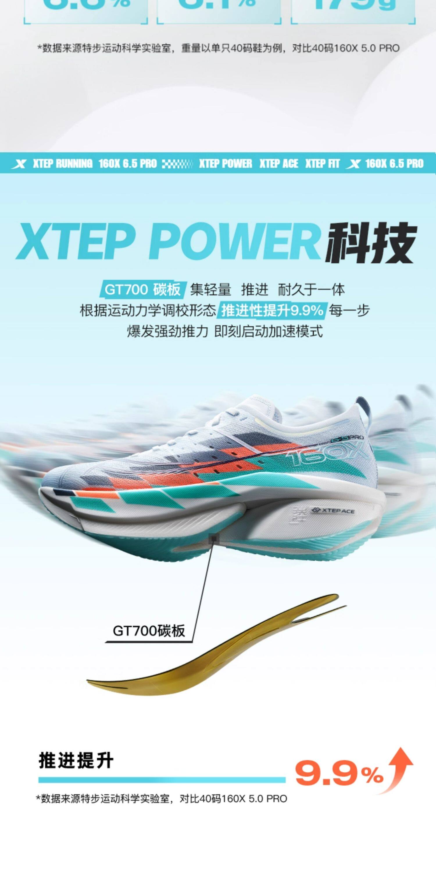 * GT700 Carbon Plate: 12K high-density full-length carbon plate, 18% stiffer than 160X 6.0 PRO, 87% energy return, optimized for Asian foot arches.
